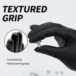 Basic Vinyl Exam Gloves, 4 mil Safty Glove Latex-Free & Powder-Free, SGBE 8003 Synmax Disposable Medical Glove Large (Case of 1000, Black)