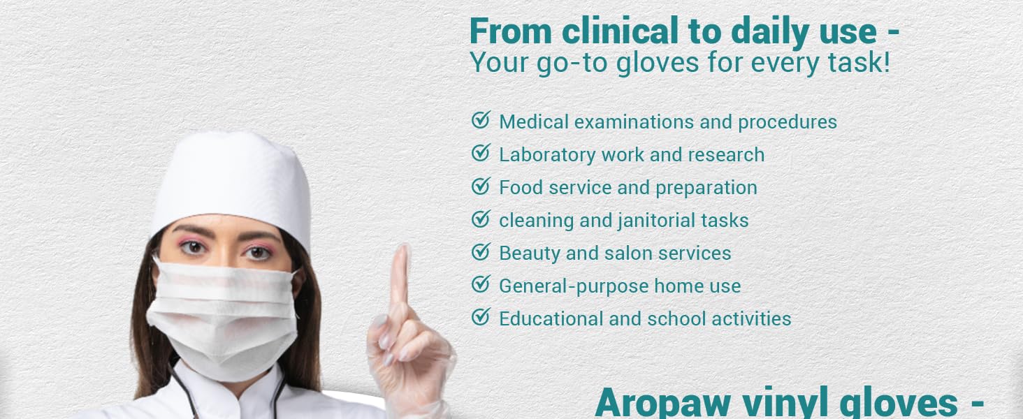 - High Quality: Aropaw vinyl exam gloves are crafted with superior quality materials, ensuring durability and reliability in various medical and non-medical applications.
